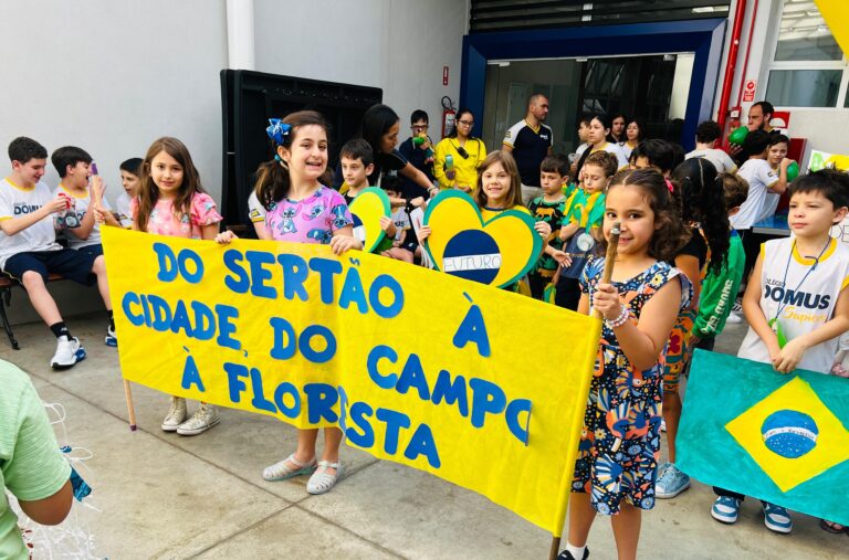 Nos dias 4 e 5 de setembro, o Colégio Domus Sapiens promoveu uma celebração especial da Independência do Brasil. Na quinta-feira, a comunidade escolar esteve presente no tradicional desfile da Rua Capitão Curado, próximo à Unidade I, enquanto na sexta-feira o evento aconteceu dentro da própria escola, na Unidade II.