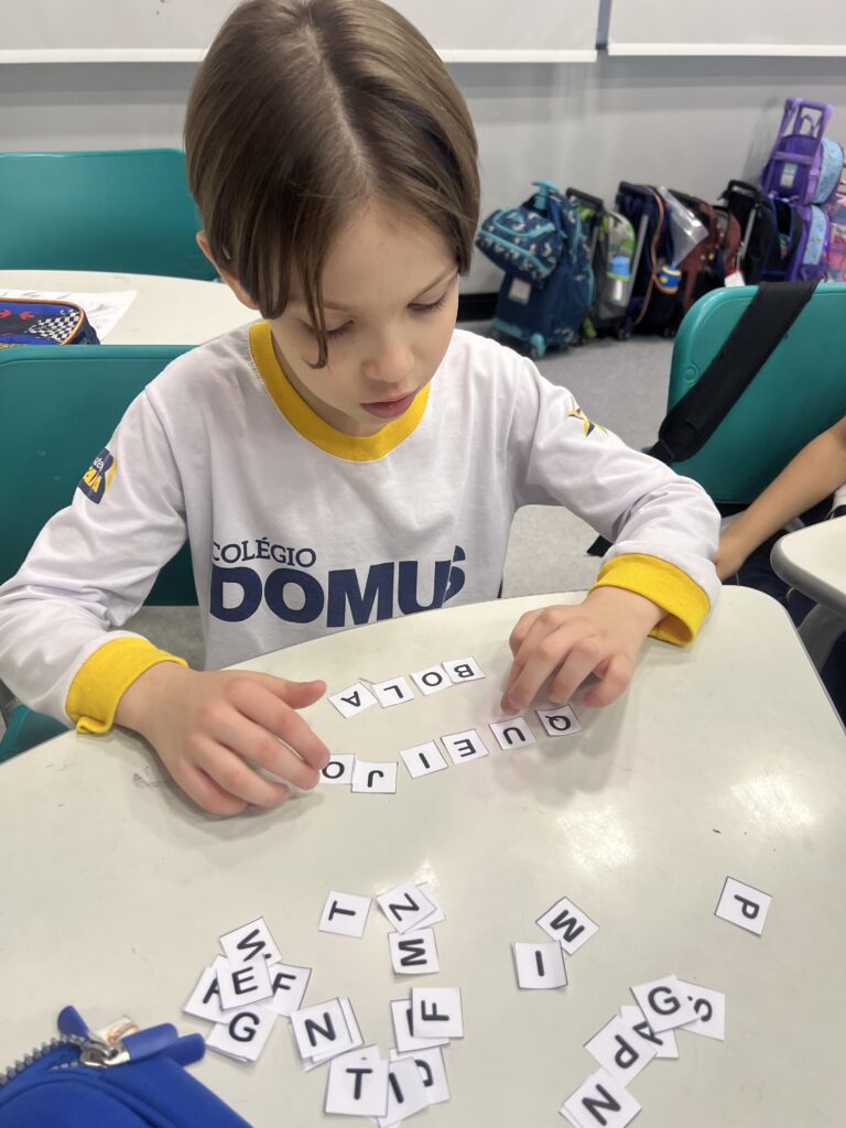 - o uso do alfabeto móvel, em que as crianças formam palavras relacionadas ao seu cotidiano;