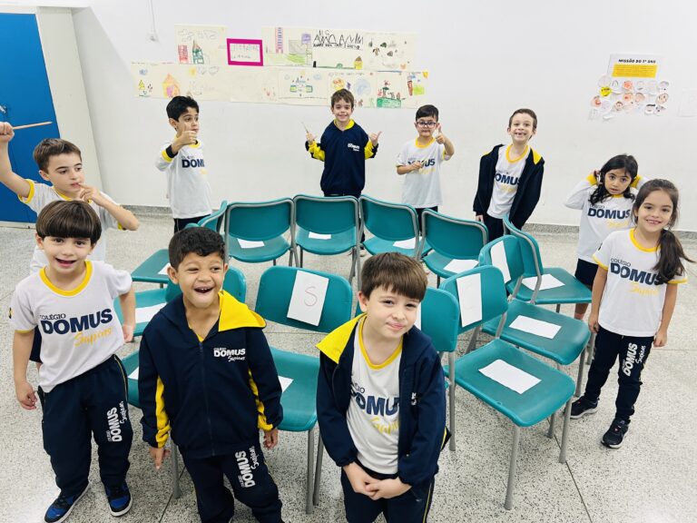 - a “dança das palavras”, uma adaptação da tradicional dança das cadeiras, em que, ao parar a música, os alunos precisam escrever uma palavra com a letra indicada na cadeira;