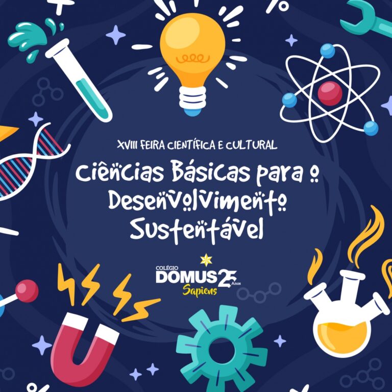 No dia 24 de setembro, o Colégio Domus Sapiens sediará palco para a XVIII Feira Científica e Cultural com o tema “Ciências Básicas para o Desenvolvimento Sustentável”. A feira ocorrerá na modalidade presencial.